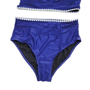 Womens Size Medium Blue & White Two-Piece Swimsuit With Trim Detail