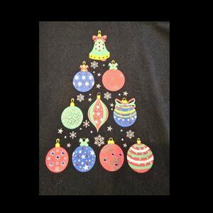 Keywords: Gloria Vanderbilt, long sleeve, t-shirt, Christmas, holiday, ornaments, festive, casual, graphic tee, women's, apparel, top, winter, seasonal