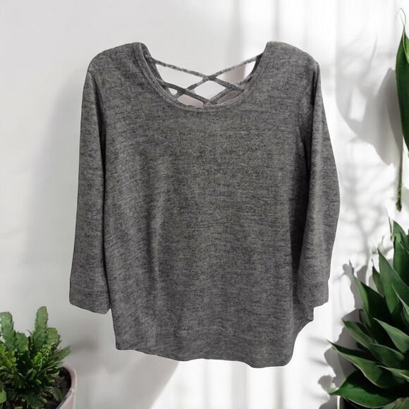 #WomensTop #SizeSmallMedium #MicroFleece #3/4 Sleeve #CrissCrossBack #HollowBack #Gray #CasualWear #FallFashion