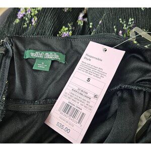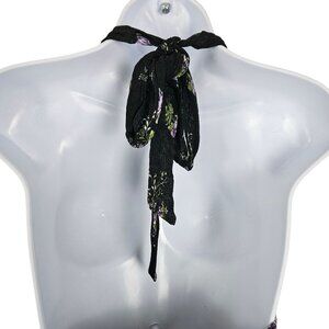 Womens Size S Black Floral Halter Mini Dress With Open Back Lined Sexy Party