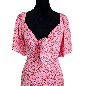 Womens Size S Floral Print Flutter Sleeve Mini Dress Tie Front Cut Out Casual