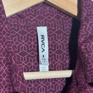 Women's Size S RVCA Trader Shirt Long Sleeve Burgundy Rayon Geometric Button Up