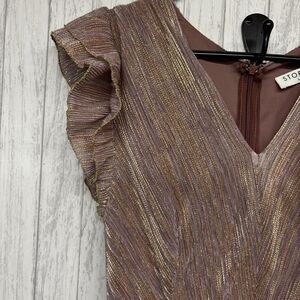 Womens Size S Storia Pink Gold Shimmer Ruffle Dress EUC