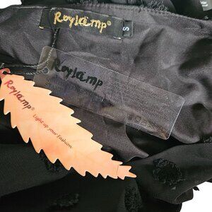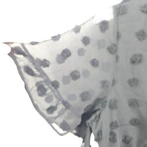 Womens Size S Swiss Dot Textured Black V-Neck Mini Dress W/ Ruffle Hem Casual