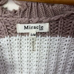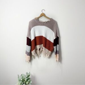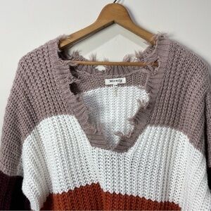 Women's Size: S/M Mauve, Orange, & White Colorblock Distressed V-Neck Sweater