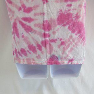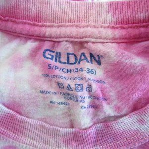 Women's Size S/P 34-36 Pink Tie Dye Cotton T-Shirt Short Sleeve Crew Neck GILDAN