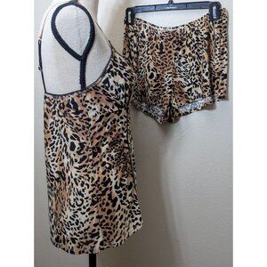 Womens Size Small 2 Pc Babydoll Cami & Shorts Pajama Set Leopard Vintage Retro