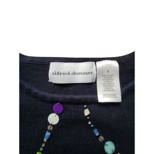 Excellent used condition. Women's size small Alfred Dunner light weight sweater. It is 3/4 sleeve. Navy blue with beaded embellishment all across the front. No stains or rips.