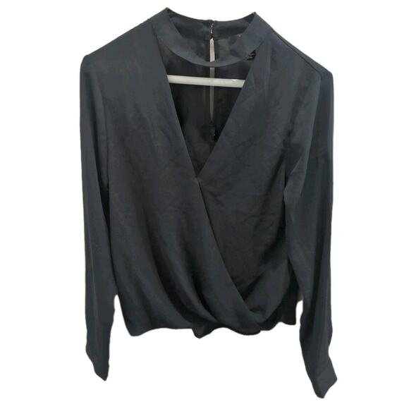 Women's Size Small Forever 21 Blouse Black Shirt Top Sheer V neck Collar EUC