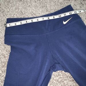 Crafted with soft and stretchy material, these leggings are perfect for women who love activewear. The size small fits true to size, and the regular size type makes it easy to pair with your favorite Nike Dri-FIT top. Whether you're hitting the gym or running errands, these Nike leggings will keep you looking and feeling great. There is some wear as pointed out in picture. Not noticed when on. Ships fast!