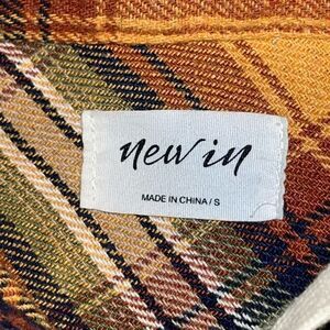 New In Womens Size Small Oversized Button Front Hoodie Shirt Shacket Gold Brown Plaid