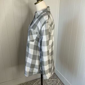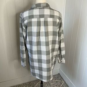 Womens Size XL Button Front Shirt Gray White Check Pattern Long Sleeve Collared