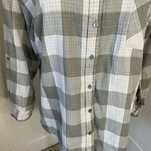Womens Size XL Button Front Shirt Gray White Check Pattern Long Sleeve Collared