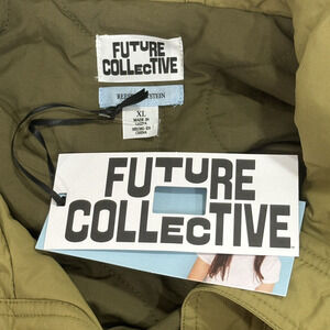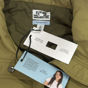 This versatile olive-green women's jacket from Future Collective is perfect for outdoor adventures or casual wear. Featuring a durable nylon shell, this jacket comes with multiple pockets, adjustable drawstrings for a customized fit, and snap-button closure for added convenience. The mid-length design ensures you stay comfortable in a variety of settings, from hikes to errands.