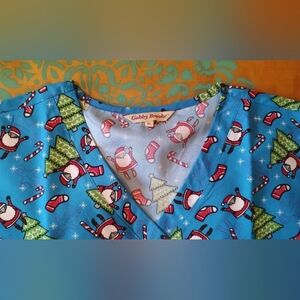 Women's Size XL Scrub Top by Gabby Brooke Christmas Santa pattern