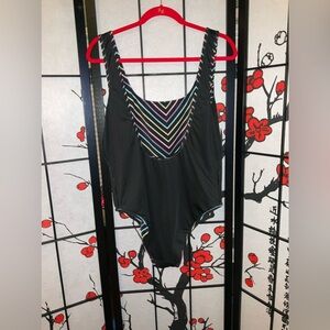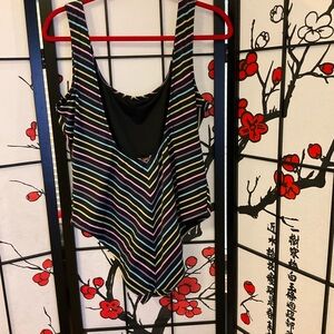 Victoria Secret PINK Women Size XL Black Multi Pastel Strip Long Waist Swimsuit. Owned and wore by me. No odor or stains. Stored in my closet.