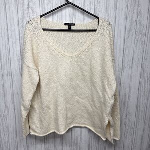 Womens Size XS Eileen Fisher Oversized Ivory V Neck Sweater EUC