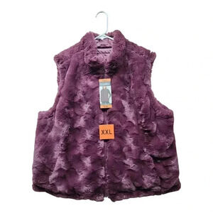 Women's Size XXL Nicole Miller Reversible Quilted Faux Fur Vest Wine Color