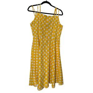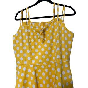 Womens Size XXL Yellow Midi Dress Fit Flare Retro Rockabilly Pinup Strappy Polka Dot