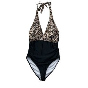 Women's Size Large Black Leopard Pring One Piece Swimsuit
