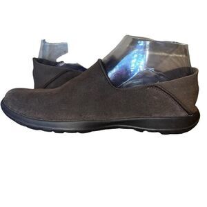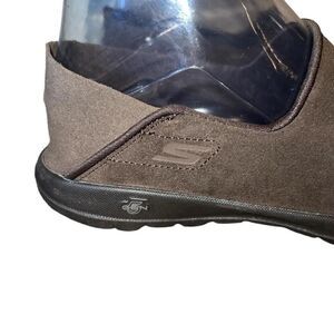 These women's Skechers slip-on shoes are perfect for casual wear. They're made with a soft suede upper and a rubber sole. The shoes are in excellent condition and have only been worn a few times.
