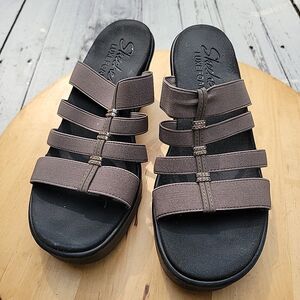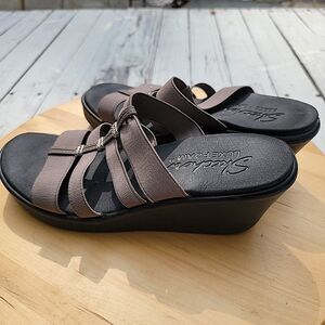 Women's Skechers Rumble on City Fever Rhinestones Wedge Sandals - Taupe Size 9