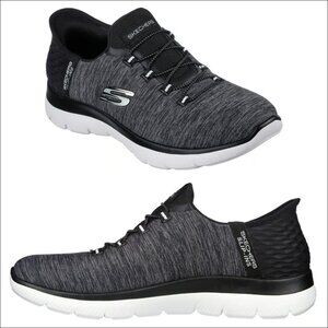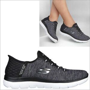 Pick up the pace with increased ease-of-wear and superior comfort wearing Skechers Slip-ins®: Summits - Dazzling Haze. Designed with our Heel Pillow®, this vegan style features a soft heathered jersey knit upper with fixed stretch laces and a cushioned Skechers Air-Cooled Memory Foam® comfort insole.