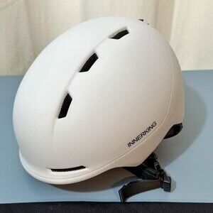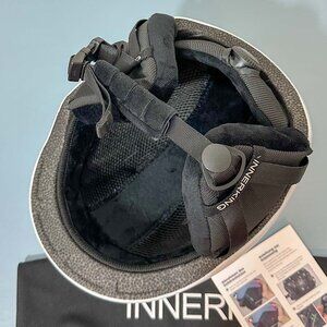 Snow helmet with polycarbonate shell, shock absorbing EPS, removable/washable liner, removable ear pads, adjustable circumference, adjustable chin strap, goggles clip. Comes in a fabric storage bag.