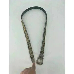 For sale is a Women's Skinny Animal Print Shimmery Belt, measuring a total length of 43.5 inches. This stylish belt features a trendy animal print with a shimmery finish, perfect for adding a touch of glamour to any outfit. Its sleek, skinny design makes it a versatile accessory for both casual and formal wear. Elevate your wardrobe with this chic and fashionable belt.
