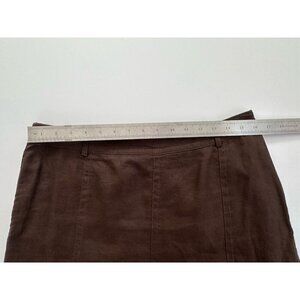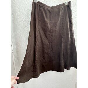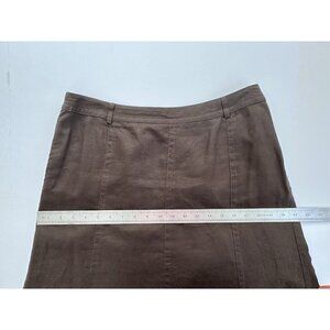 Women's Skirt Petites 12 100% Linen Dark Brown Fit/Flare Midi Artsy Preppy Work