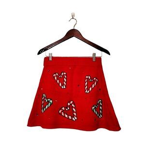 Womens Skirt Red S Candy Cane Christmas Mini Hearts Knit