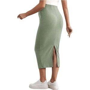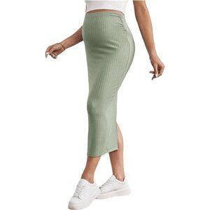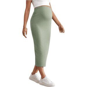 Women's Skirt Rib Knit High Waist Long Skirt Mint Green