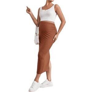 Feature: This maternity skirt has the features of long length, high waist, adjustable waist, rib kint, split hem, you can enjoy complete mobility freedom.
