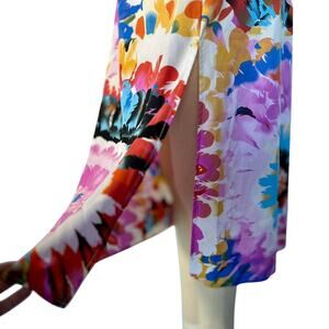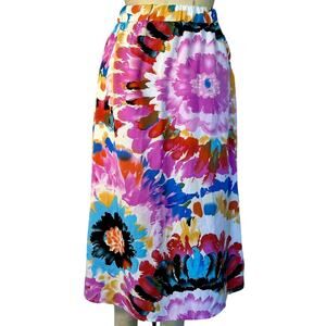 Womens Skirt Size Medium Floral Midi Side Slit Spring Summer Tropical Packable