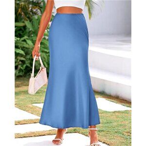 FEATURES: Fall Skirts For Women, Elastic High Waist Skirts, Flared A Line Skirts, Mermaid Satin Skirts, Solid Color, Maxi Skirts For Women, Fits For Spring, Summer, Fall