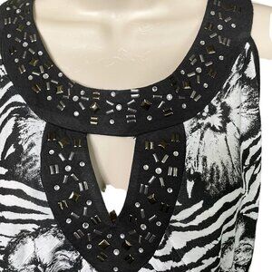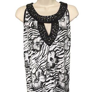 Womens Sleeveless Blouse Animal Print Top French Laundry Black White u Size 18