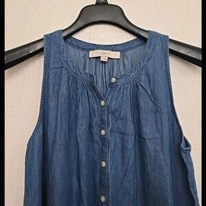 Women’s Sleeveless Blue Chambray Midi Dress Boho Minimalist Coastal Resort Sz S