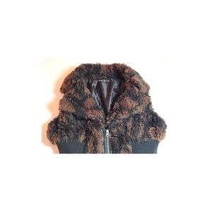 Faux Fur Collar Womens Sleeveless Brown Sweater Vest L Fitted Glam Mob Wife Boho Edgy Western. There is some pet dog/cat hair on this.