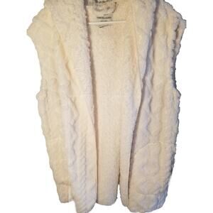 Women’s Sleeveless Cardigan Vest One Size Ivory Fuzzy Long Sku A158