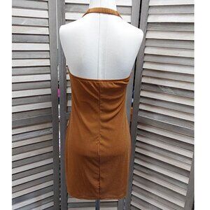 Shimmery lurex dress from Wild Fable with a sleeveless design. Made from lightweight, soft and stretchy mesh fabric with a soft lining. Halter neckline with a shirred keyhole cut-out accent at the front with ringed detail. Mini length with a front slit completes the design with added flair. Great for homing, weddings and other formal occasions. Wild Fable : A look for every story.Less