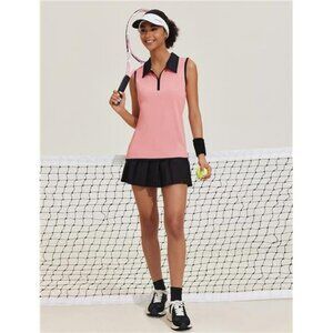 Womens Sleeveless Golf Polo Shirt Quick Dry Zip Tank Top Athletic Sports Tee