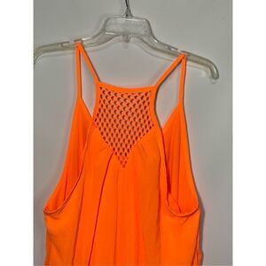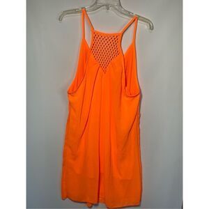 Womens Sleeveless Hollow Net Sundress Swim Cover-Up Mini Dress Orange
