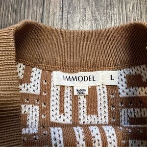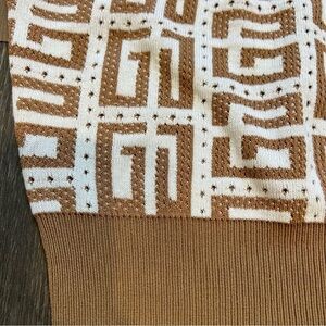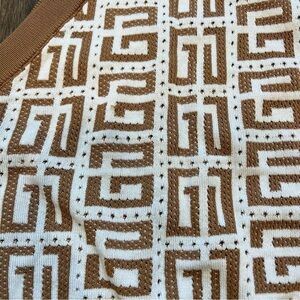 Women’s Sleeveless Knit Crop Top White and Tan Round Neck Size L