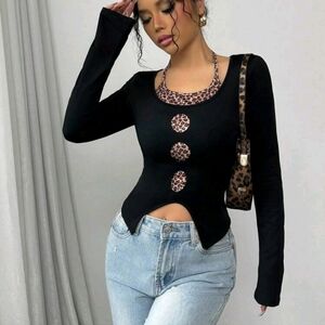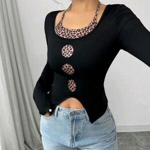 Women's Sleeveless Leopard Print Contrast Color Halter Neck Vintage T-Shirt
