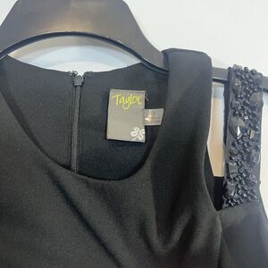 This is a new with tags women's little black dress by the brand Taylor. It is a size 6 with a regular fit and flare style, featuring sleeveless design and embellished with jewels for added flair. The dress falls to knee length, making it a versatile and elegant option for various occasions. We do our best to take photos from all angles and point out any flaws we see; please review all photos and zoom in to see the exact condition, details, etc. We pride ourselves on happy customers- reach out with any questions! If you have time, check out our storewe find treasures everyday and right now have a great selection of handbags and clothes. Wed love to create a custom bundle for YOU. Happy shopping! Color of item may vary slightly due to photographic lighting sources and/or screen display.