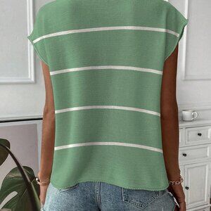 Features: A comfy, casual sleeveless vest with a V-neck and elegant cape-style sleeves that beautifully cover your arms. Solid color with subtle stripe accents, offering a relaxed fit that suits all body types. Perfect for adding a chic touch to your warm-weather outfits.