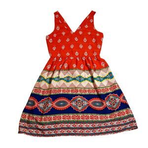 Women's Sleeveless V-Neck Fit and Flare Mini Dress Size XS Bohemian Colorful