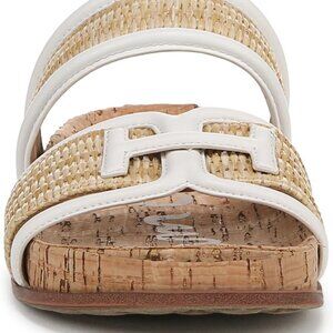 Features: Stylish leather slides with a double-banded basketweave design, featuring chunky piped trim and a bit detail for a cool, urban vibe. Easy slip-on style with a comfy 1.375-inch heel, great for all-day wear.