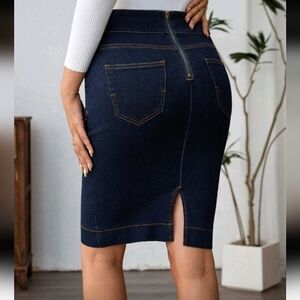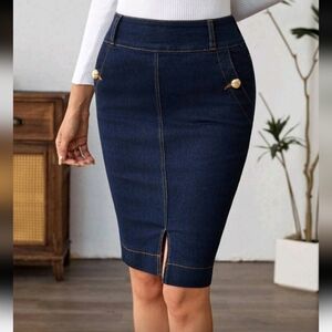 Women's Slim Fit High Waist Slit Hem Fashionable Versatile Denim Skir