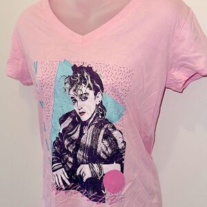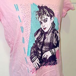 Women’s Slim Fit Madonna T-shirt Tee Shirt Band 80’s Pink Music Medium M